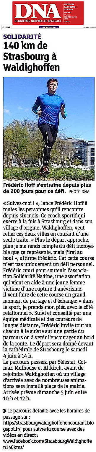 2016/05/25 - DNA Région - Solidarité -140 km de Strasbourg à Waldighoffen