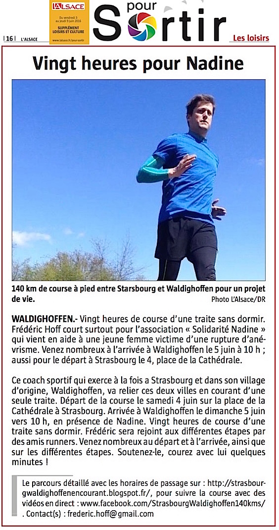 2016/06/03 - L'Alsace - DNA - Supplément Sortir - Vingt heures pour Nadine
