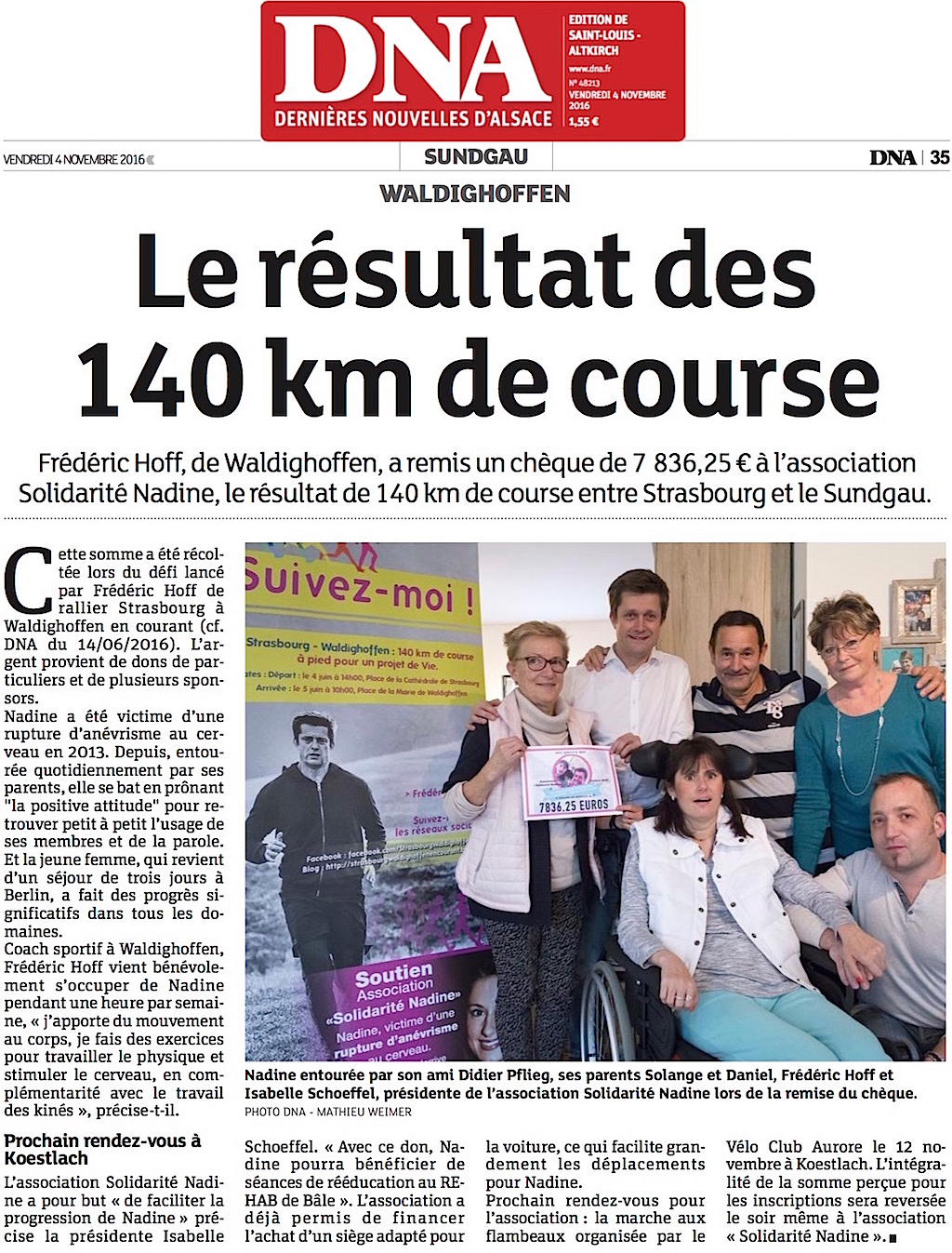 2016/11/04 - DNA - Le résultat des 140 km de course avec F. Hoff