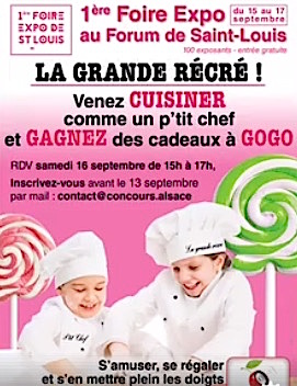 Avec Cerise FM et Adrien Gontard, chef et Frédéric Hoff, coach sportif, à St Louis, le 16 septembre de 15 h à 17 h, à La 1ère Foire Expo de Saint Louis