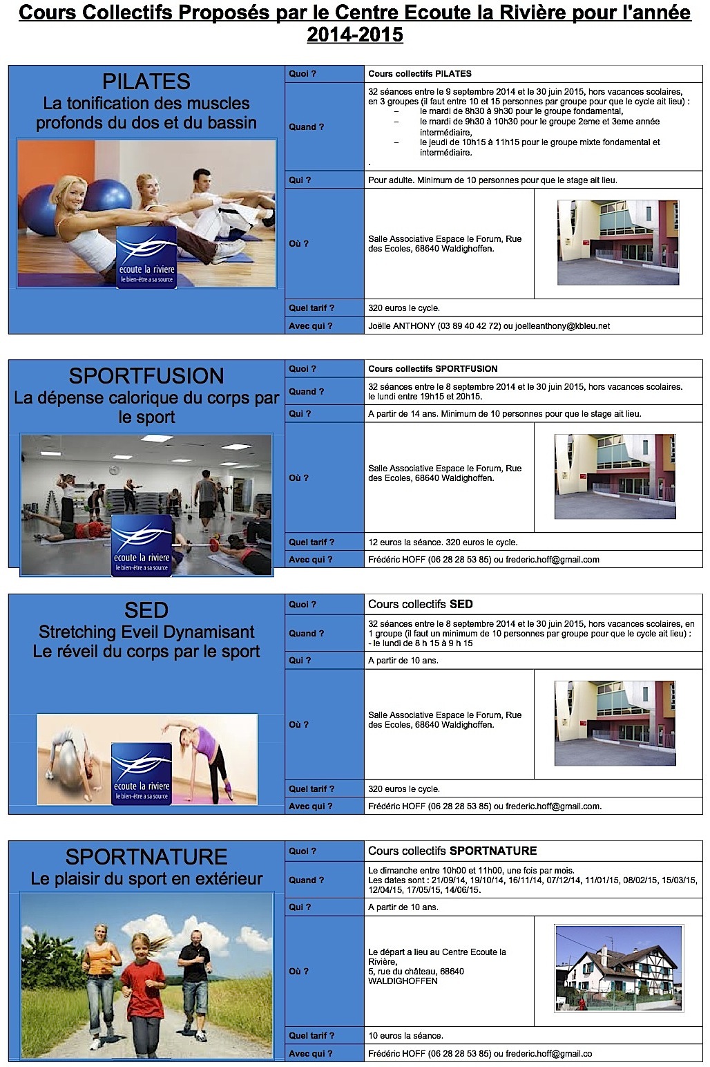 Tous les cours collectifs de "Ecoute la Rivière" en un seul document