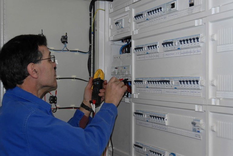 - Monsieur Fabien Dietschy est concentré pendant son travail entant qu'électricien à Waldighoffen dans le Sundgau.