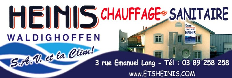 - Les enseignes des Ets Heinis à Waldighoffen pour le chauffage et le sanitaire et pour les énergies renouvelables : solaire, bois, aéro/géothermie.