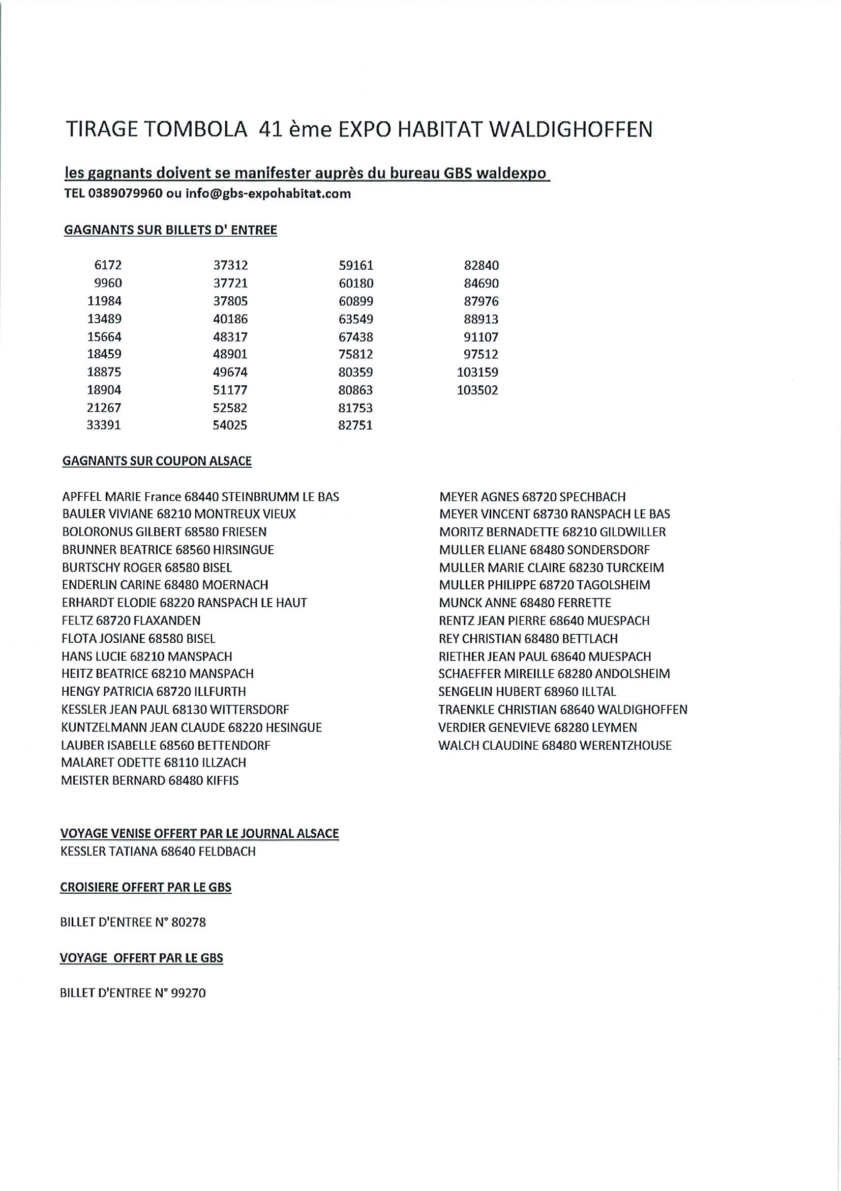 Vous êtes ici : Accueil Vie économique Entreprises Groupement du Bâtiment du Sundgau Documents et images du GBS Waldighoffen Tirage tombola Expo-Habitat 2025