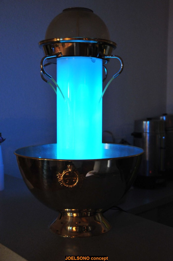 Fontaine à cocktail lumineuse de couleur bleue… tout est possible avec Joël Sono Concept de Waldighoffen !