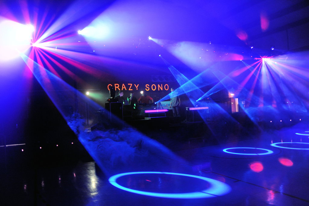 Jeux de lumières bleue et rose sur une scène préparée par Joël Sono Concept de Waldighoffen.