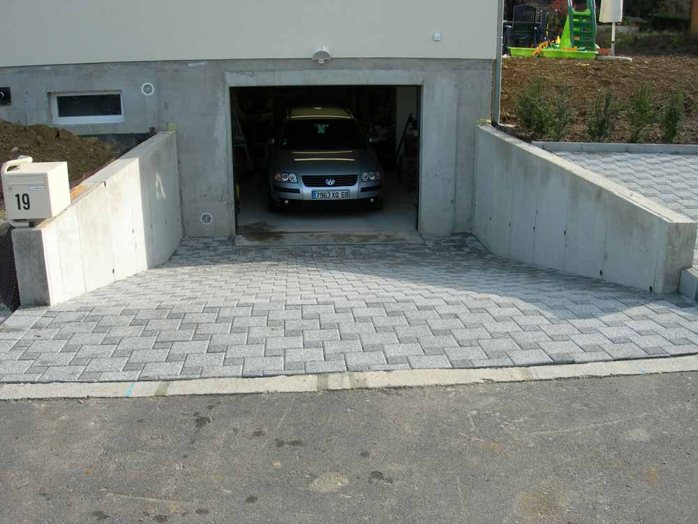 Vous êtes ici : Accueil Vie économique Entreprises Paysages Simon Michaël Photographies Paysages Simon Michaël de Waldighoffen Descente de Garage en pavé gris