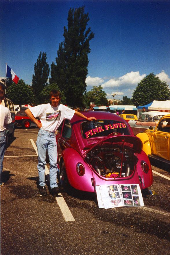 Yves Colombe présente sa Coccinelle Pink Floyd lors d'une expo Tuning à Vesoul.