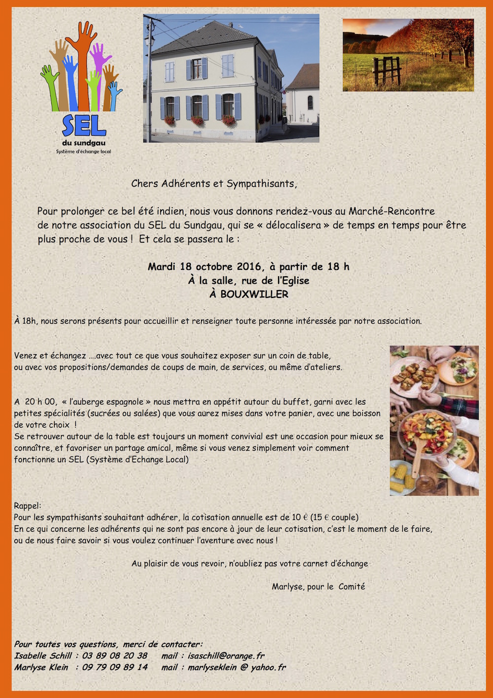 Flyer SEL (Système d'échange local) invitation bouxwiller 18 octobre 2016