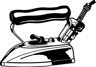 Dessin d'un fer à repasser en noir et blanc.