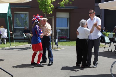 Eric et l'animatrice qui dansent