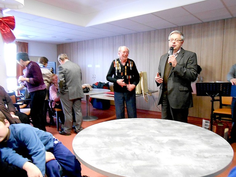 - Le Docteur Beltz a posé son stéthoscope pour prendre un micro et divertir les pensionnaires de la résidence Heimelig et fêter Noël.