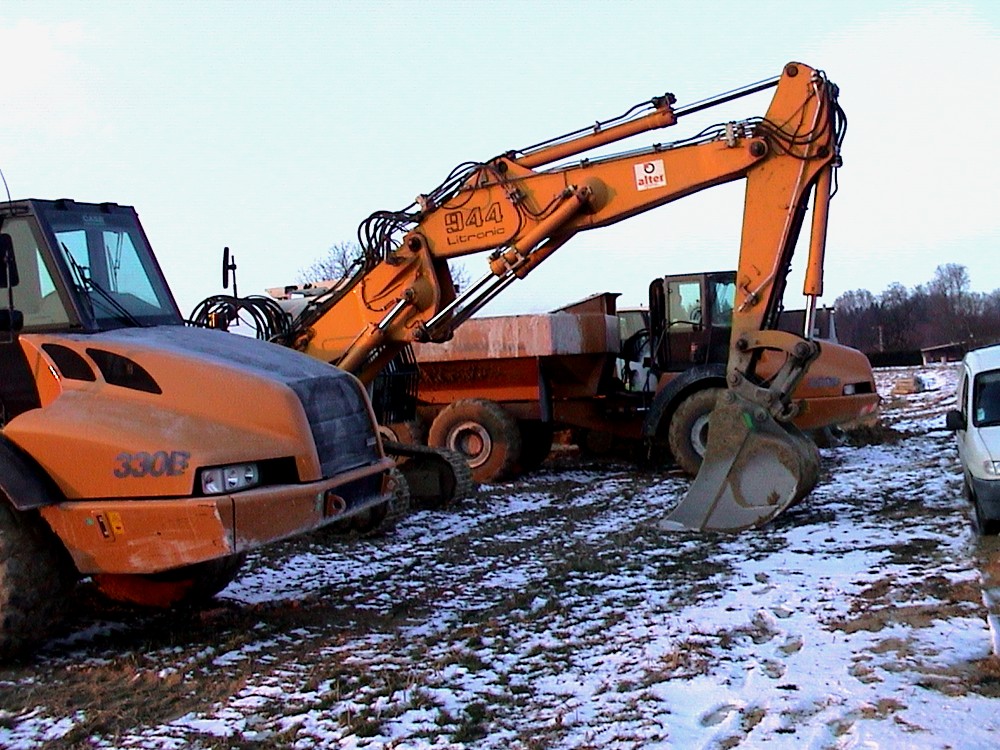 Photo du 08 mars 2010 montrant les camions juste avant le commencement des travaux de terrassement du futur EHPAD à Waldighoffen.