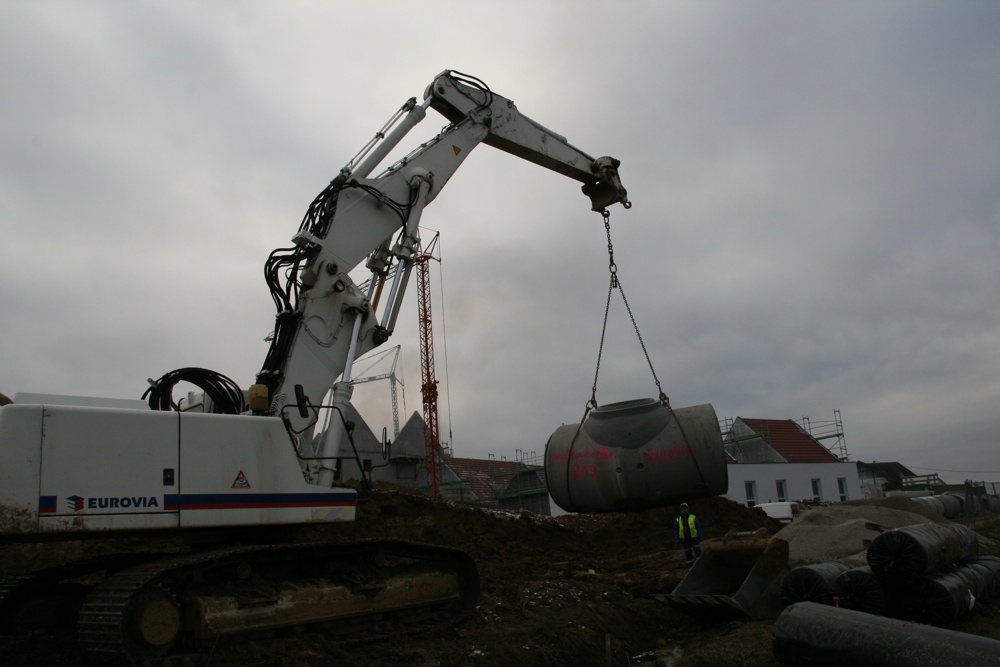 Transport d'un élément du bassin de rétention sur le chantier de l'EHPAD, le 24 janvier 2011