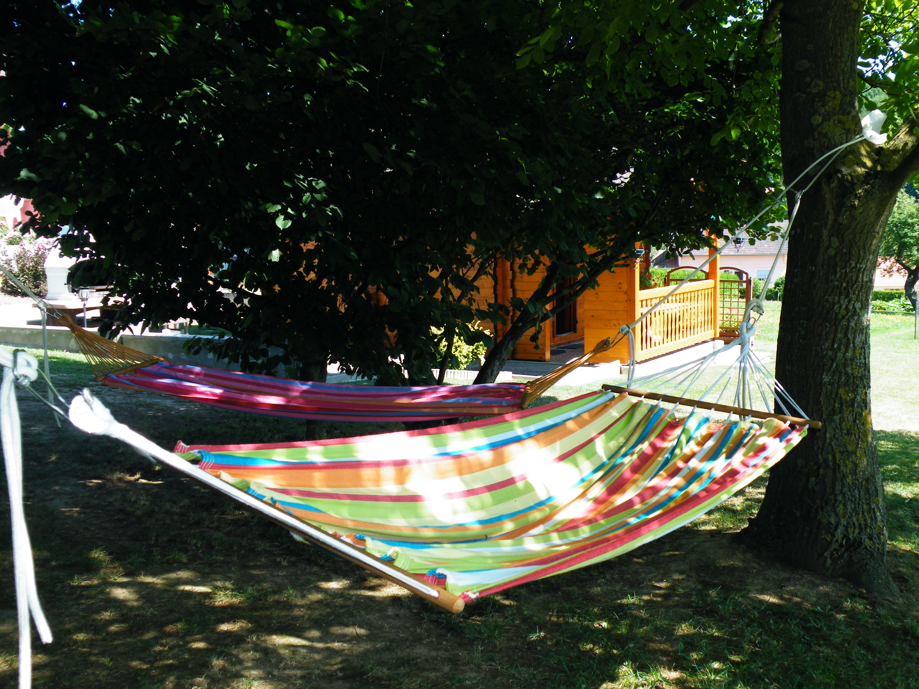 2 hamacs à côté du chalet La Cluserette, gîte pour 4 personnes à Grentzingen.