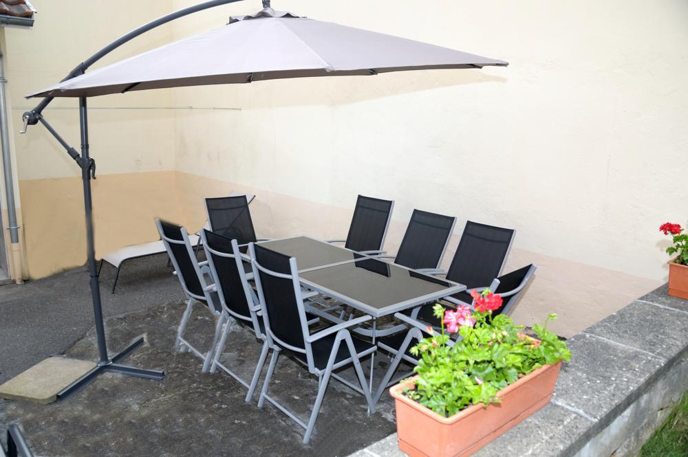 La table à l'extérieur pouvant accueillir 8 personnes du gîte Klei Paris à Waldighoffen. Pour les soirées d'été et les repas.