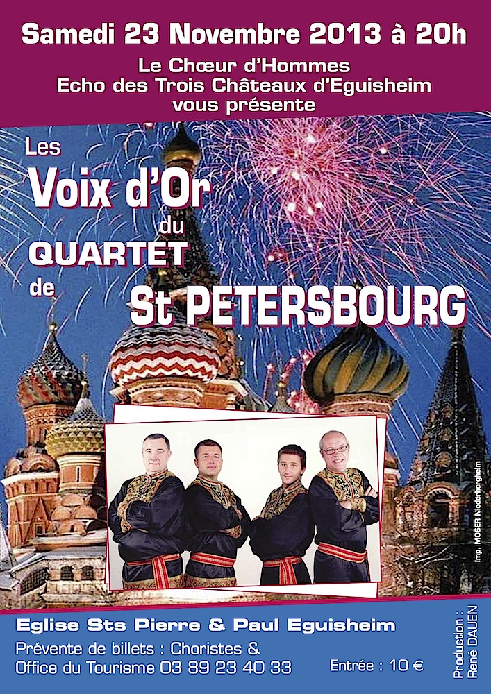 Vous êtes ici : Accueil Vie pratique Photographies évènements extérieurs à Waldighoffen Affiche Les Voix d'Or du quartet de St Petersbourg