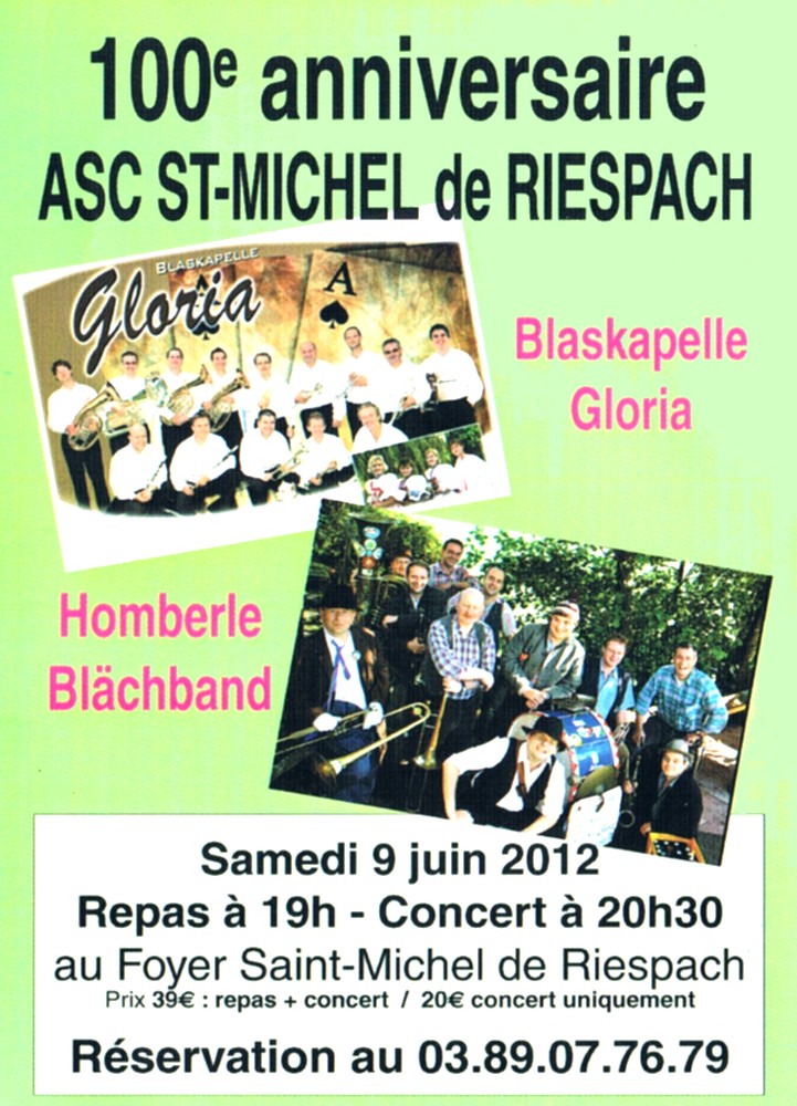 Affiche du concert du 100ème anniversaire de l'ACS Saint-Michel de Riespach.