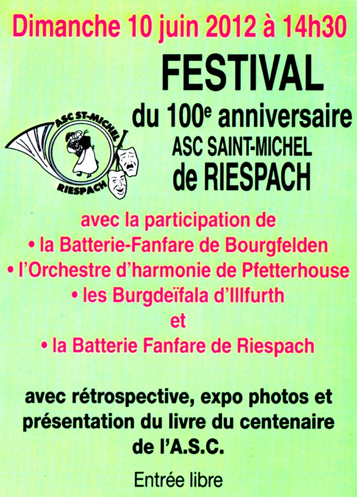 Affiche du festival du 100ème anniversaire de l'ACS Saint-Michel de Riespach.