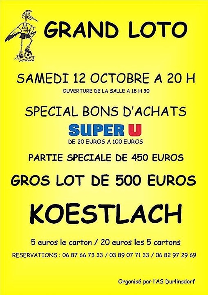 Grand loto de l'AS Durlingsdorf à Koestlach (avec Super U)