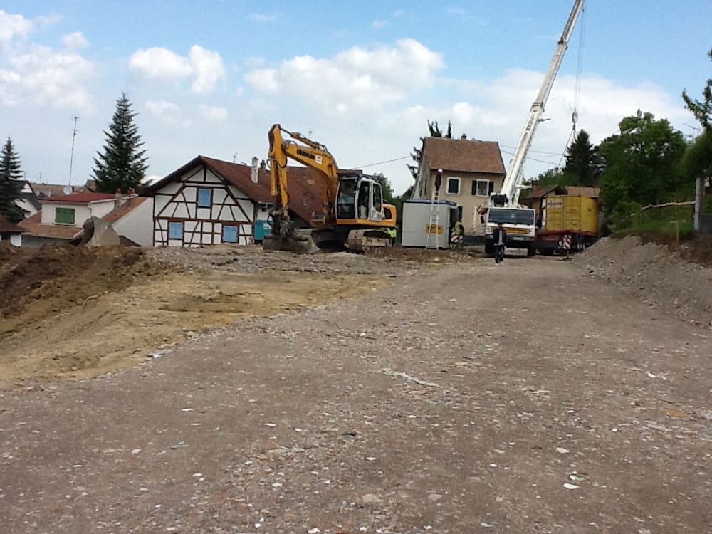 Mise en place des baraques de chantiers qui resteront en place pour toute la durée de la construction de la résidence seniors à Waldighoffen.