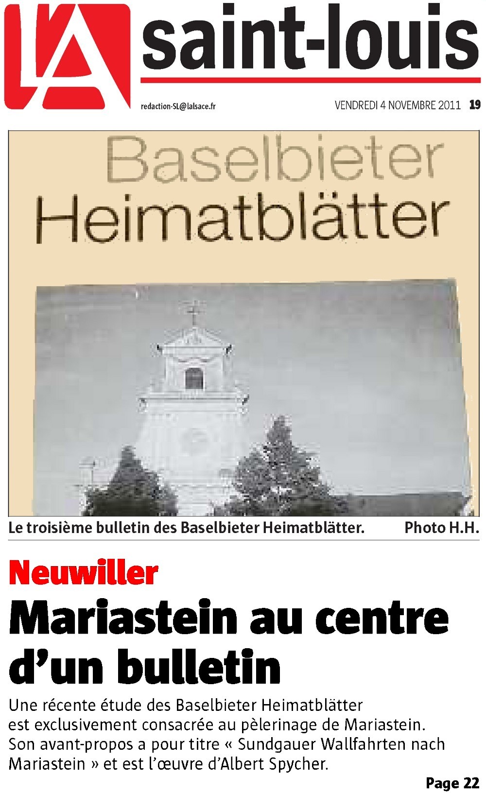 2011-11-04 - L'Alsace 3frontières-Neuwiller au centre d'un bulletin