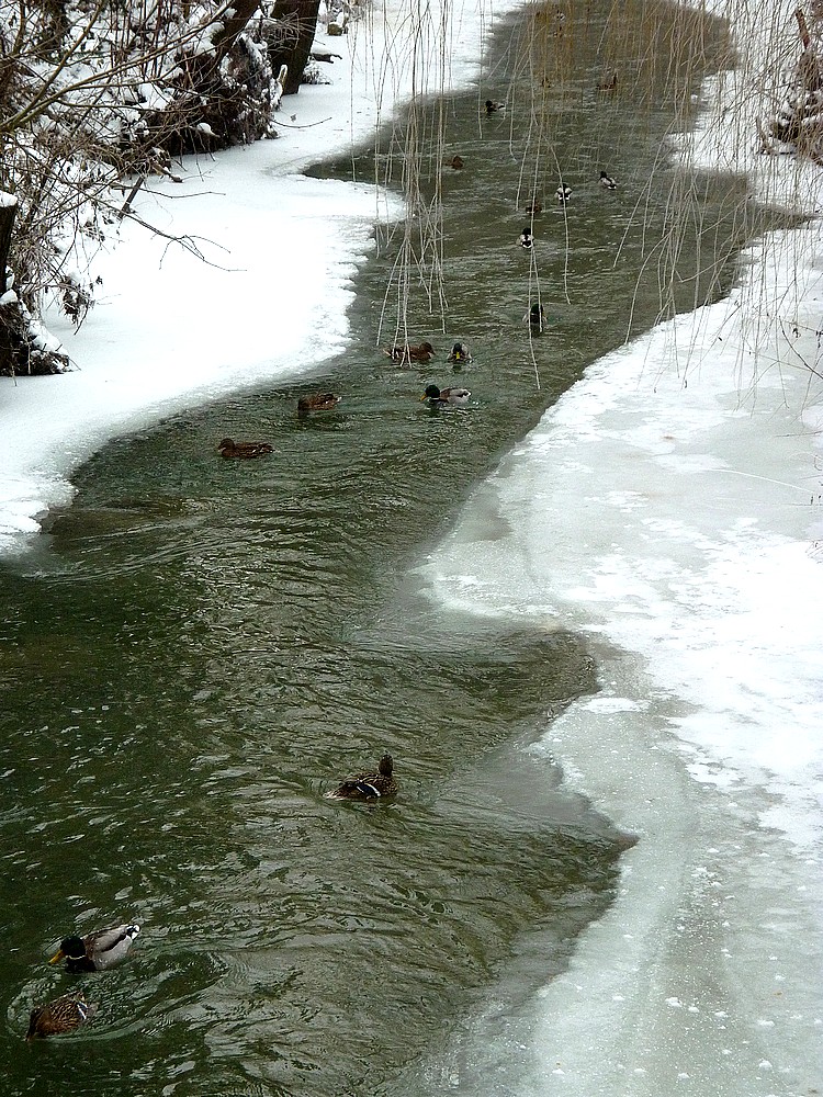 Canards colverts sur l'Ill presque gelée à Waldighoffen-photo R.Minery-7 fév 12