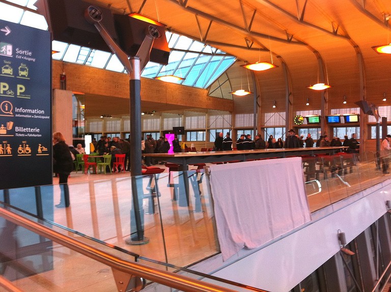 Plans inclinés et escalators dans la gare TGV Belfort Montbéliard