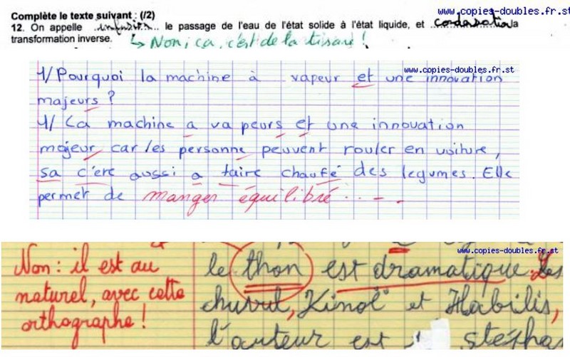 Vous êtes ici : Accueil WALDImag De tout et de rien Photos et annexes " De tout et de rien " La vie est dure pour les enseignants : exemples de corrections de copies