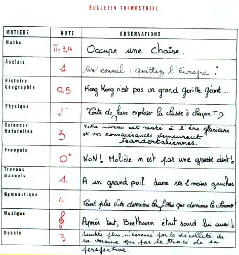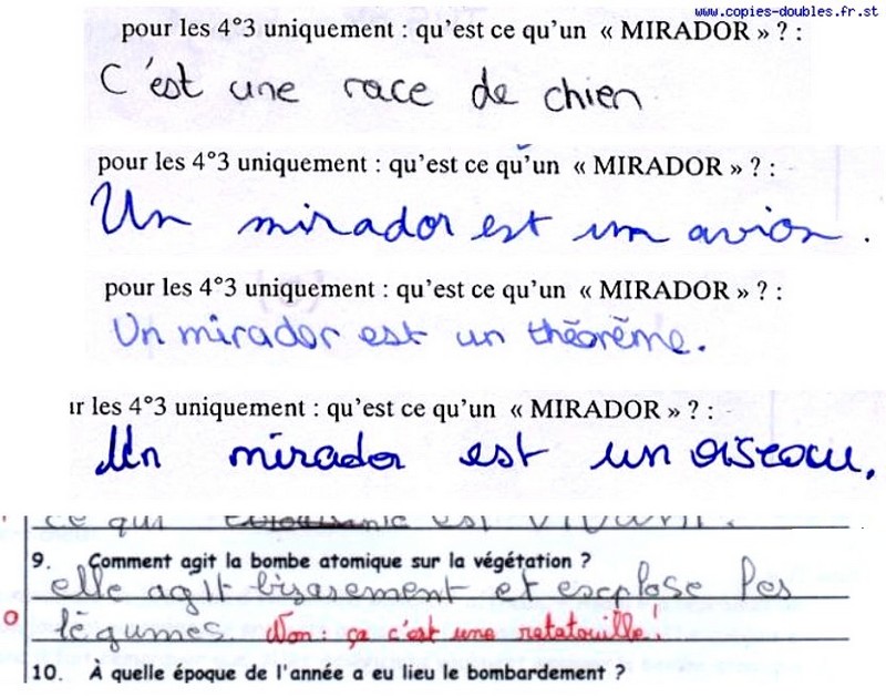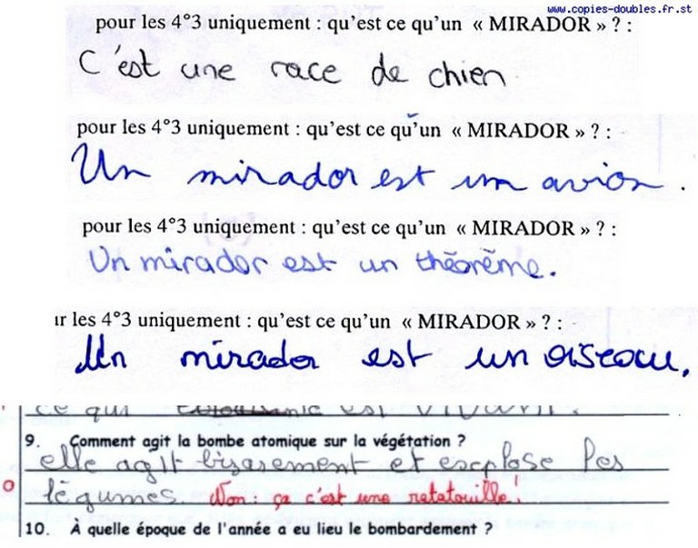 Très drôles exemples de copies corrigées, avec leur lots de bêtises. Certains professeurs ont de l'esprit !