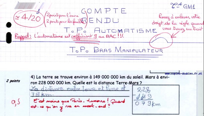 La vie est dure pour les enseignants : exemples de corrections de copies