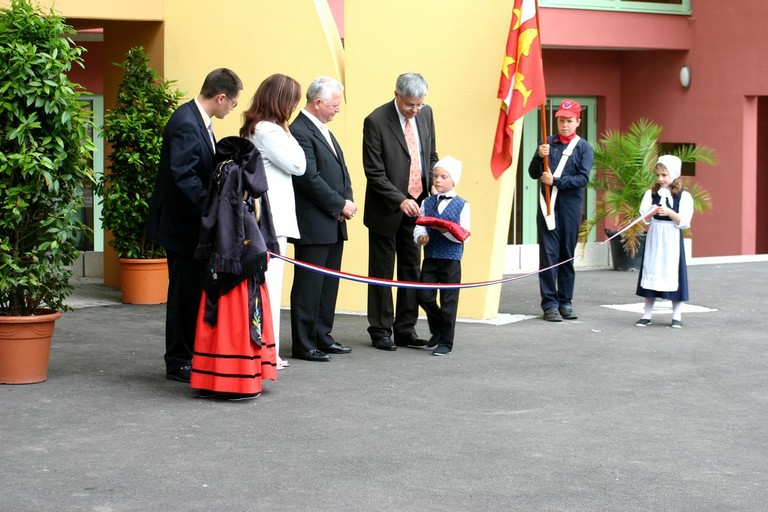 - Le 28 mars 2003, la grue a installé le sapin signalant la fin du gros oeuvre en présence des enfants, des enseignants et des officiels.