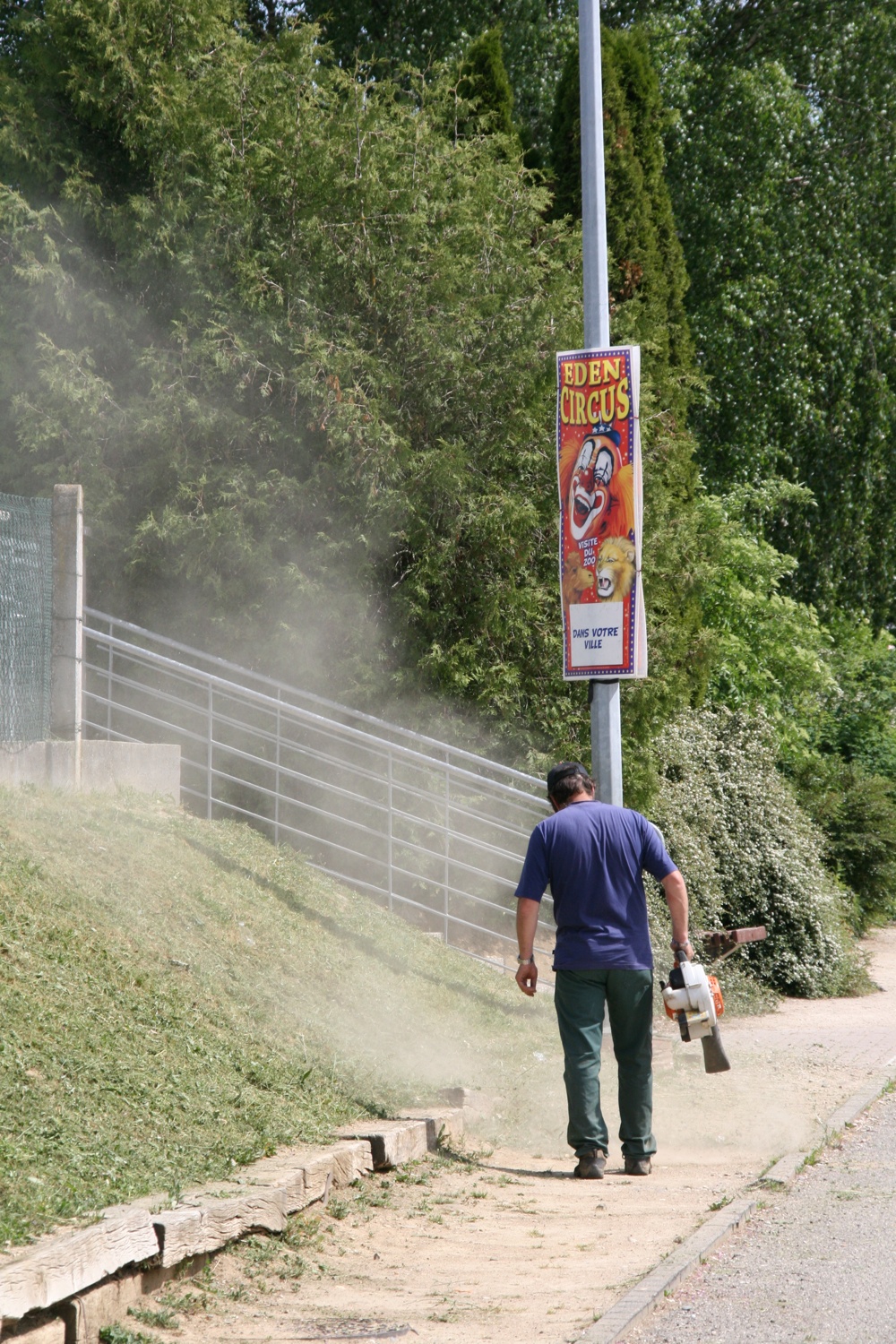 Pascal Capitaine, ouvrier communal à Waldighoffen passant la souffleuse aux abords de l'école élémentaire.