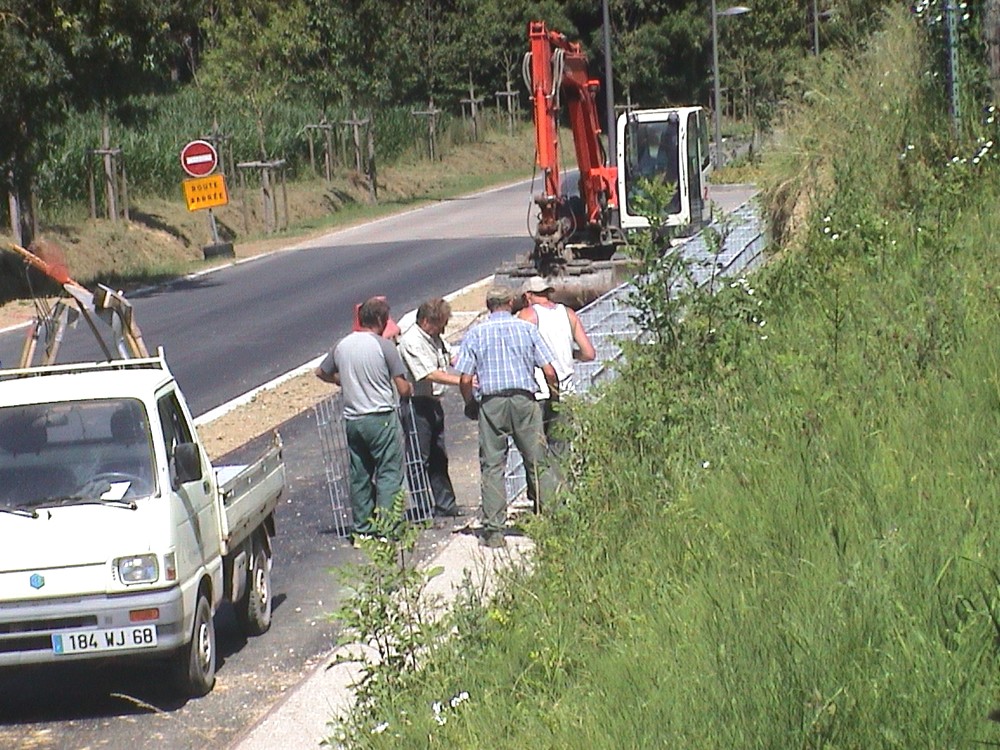 Vous êtes ici : Accueil WALDImag Waldighoffen en images Les photos des travaux des ouvriers communaux de Waldighoffen Pose de gabions à Waldighoffen, photo de la pose des cages vides