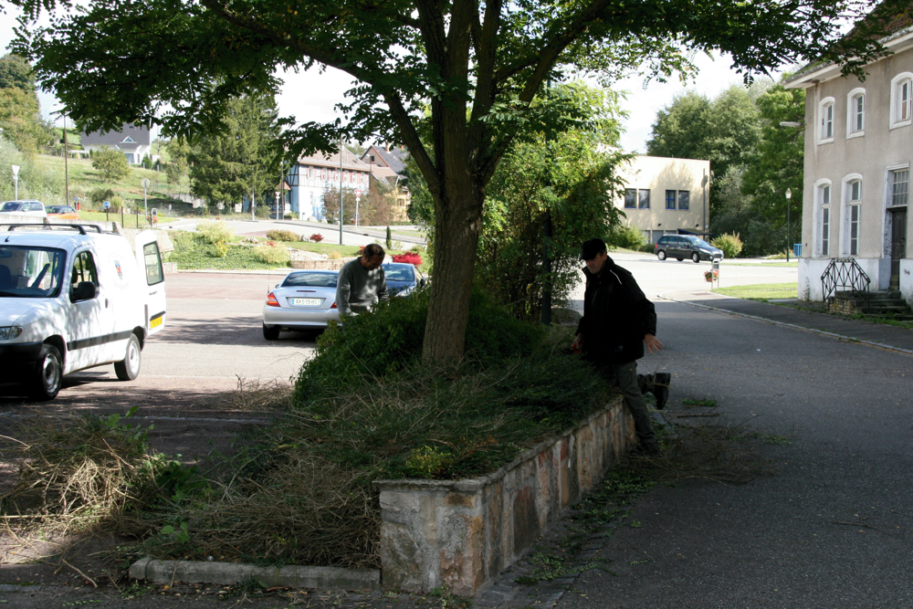 Vous êtes ici : Accueil WALDImag Waldighoffen en images Les photos des travaux des ouvriers communaux de Waldighoffen Taille des arbustes au site Lang le 27 septembre 2010