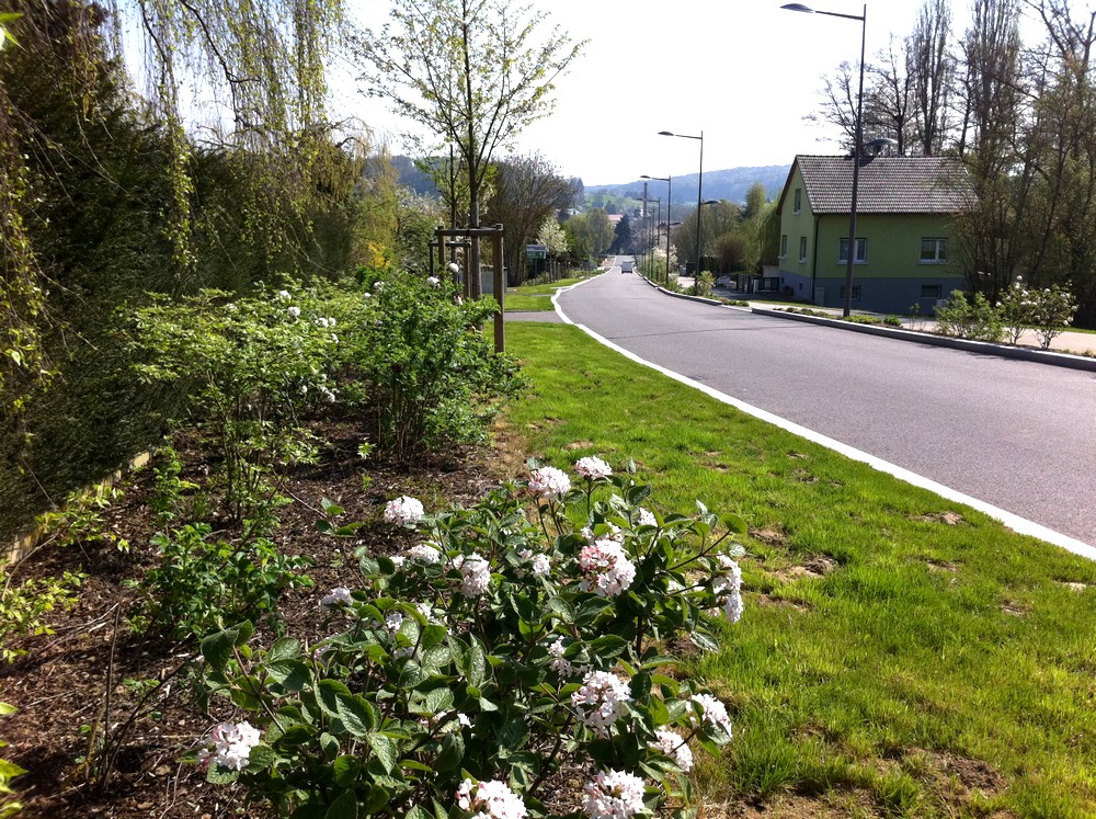 Parterre d'arbustes en haut de la rue du 19 novembre à Waldighoffen.