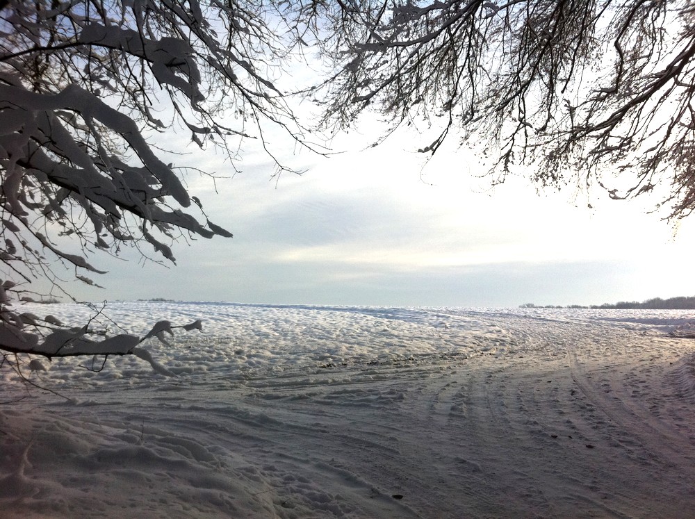 On quitte la forêt et on atteint les champs enneigés