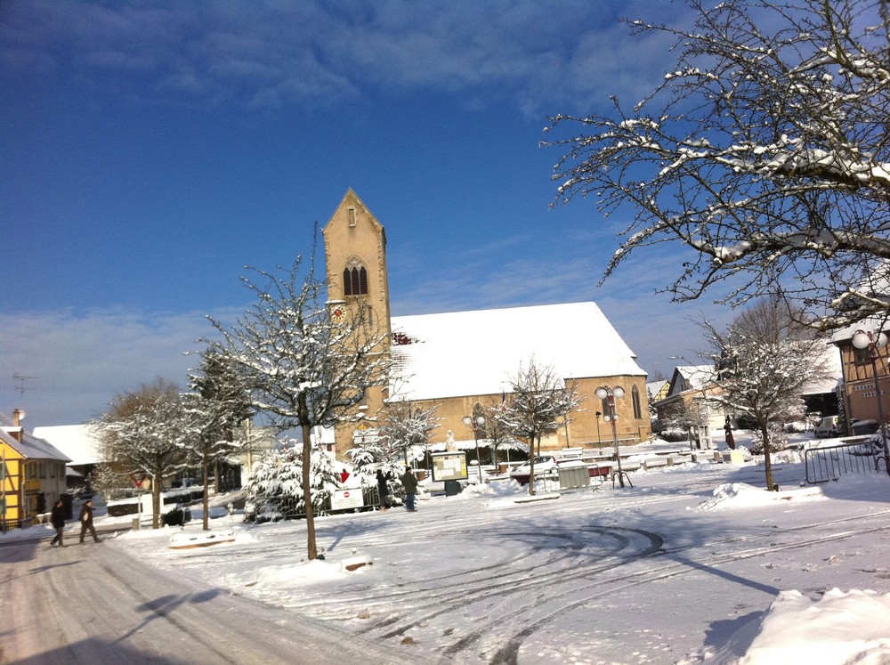 Vous êtes ici : Accueil WALDImag Waldighoffen en images Waldighoffen aux 4 saisons L'hiver 2010-11 à Waldighoffen Place Jeanne d'Arc Eglise 26 déc 10