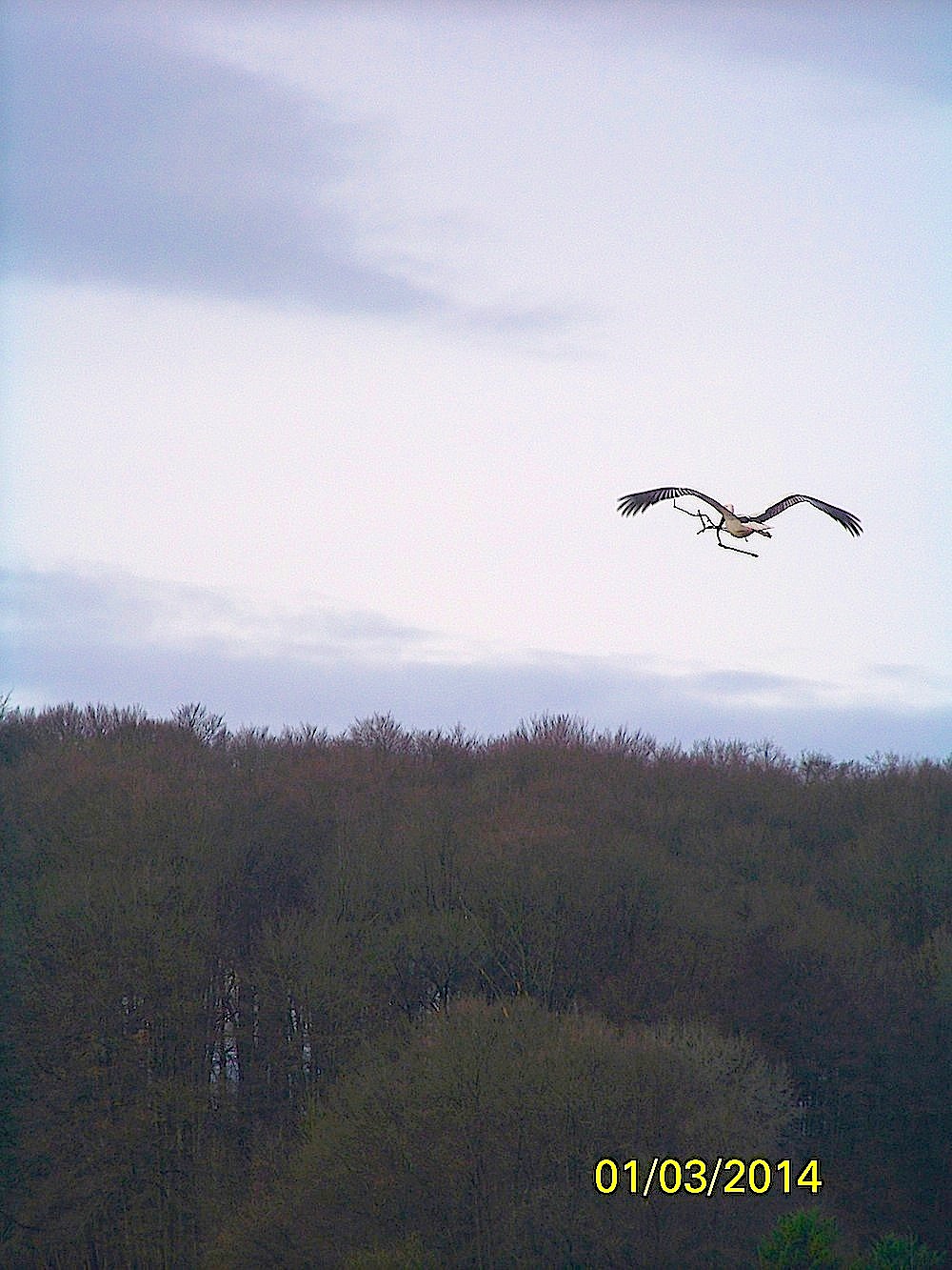 Vous êtes ici : Accueil WALDImag Waldighoffen en images Waldighoffen et les cigognes Cigogne en plein vol avec sa branche